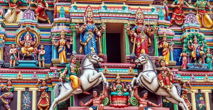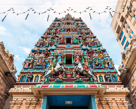 欣賞其宏偉的5層高塔門,這座高22至23米的塔樓裝飾華麗,飾有228尊色彩繽紛的印度教神像雕塑,是拍照的理想地點。