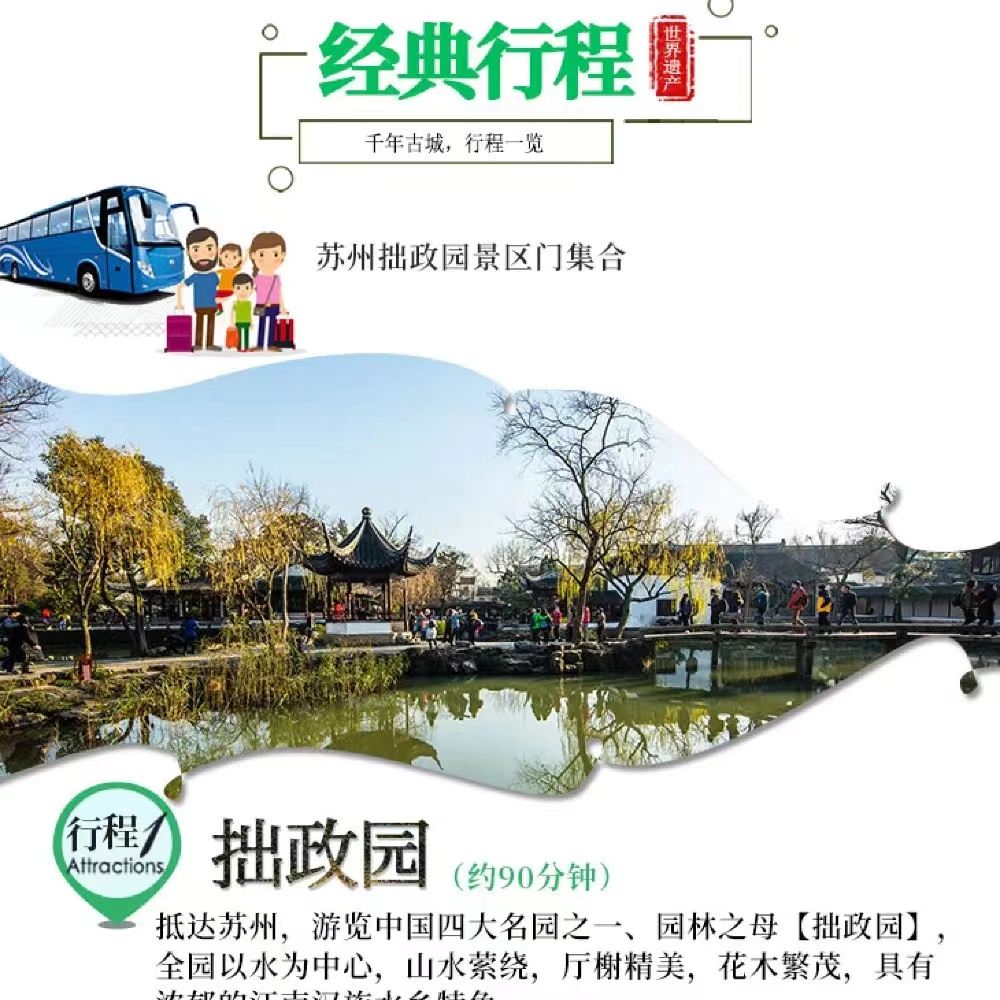 全程導遊講解,含耳機,了解蘇州園林,5A景點,世界文化遺產
