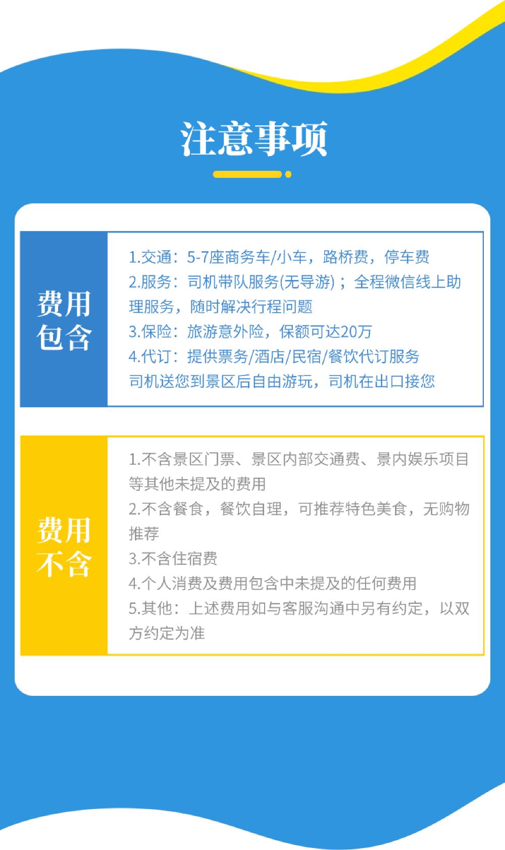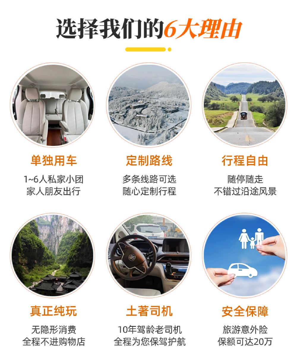 此為包車價,根據人數選擇車型拍1份(1-4人拍經濟5座,4-6人拍商務7座)即可,費用不含門票和餐飲,門票可為您代訂~