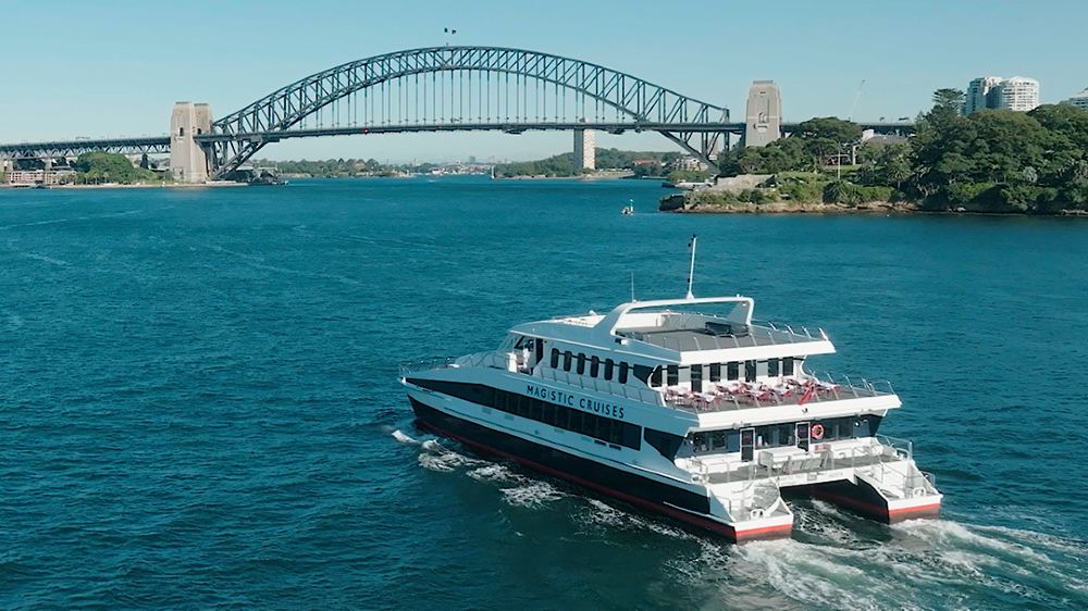 在澳洲著名的建築設計師手下,擁有美麗船體、豪華舒適設備、媲美高級餐廳氣氛的magistic號誕生!百萬元打造的豪華雙體船,悠遊在美麗的悉尼港,享受美味餐點品點名酒,是你放鬆心情的不二選擇。登上游船巡遊悉尼港,沿途可以欣賞悉尼歌劇院、悉尼海港大橋、海港國家公園、維多利亞女王大廈等著名景點。當悉尼歌劇院的身影漸入視野,海港大橋的雄偉展現眼前。湛藍的海上,點點白帆和燦爛的陽光一齊恣意灑落海面,配有英文講解,我們還將為您提供精緻美味的飲品。