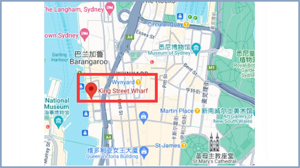 碼頭地址:國王街碼頭King Street Wharf(32 The Promenade, King Street Wharf 5, Sydney NSW 2000)