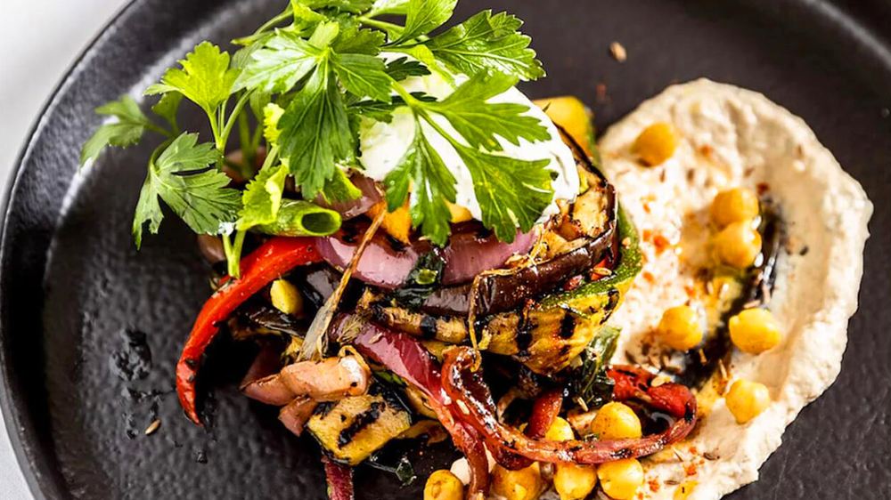中東風味慢烤茄子配西葫蘆、風乾番茄等