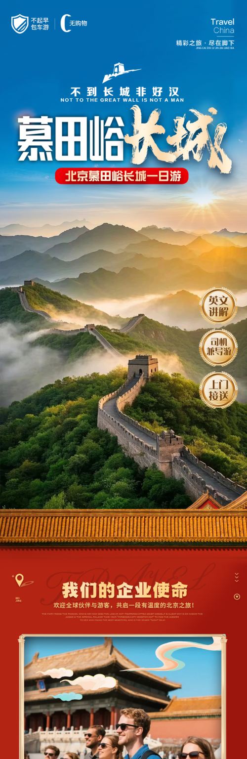慕田峪長城一日遊【英文導遊 包車 體驗黃包車VIP小團】