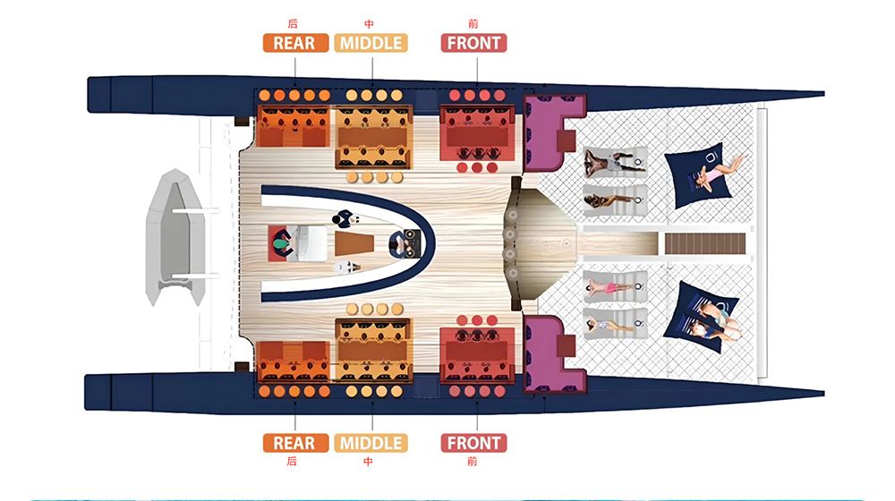 ● 開放式船艙,超平穩雙體大型帆船,沙發卡座設計,適合全家總動員