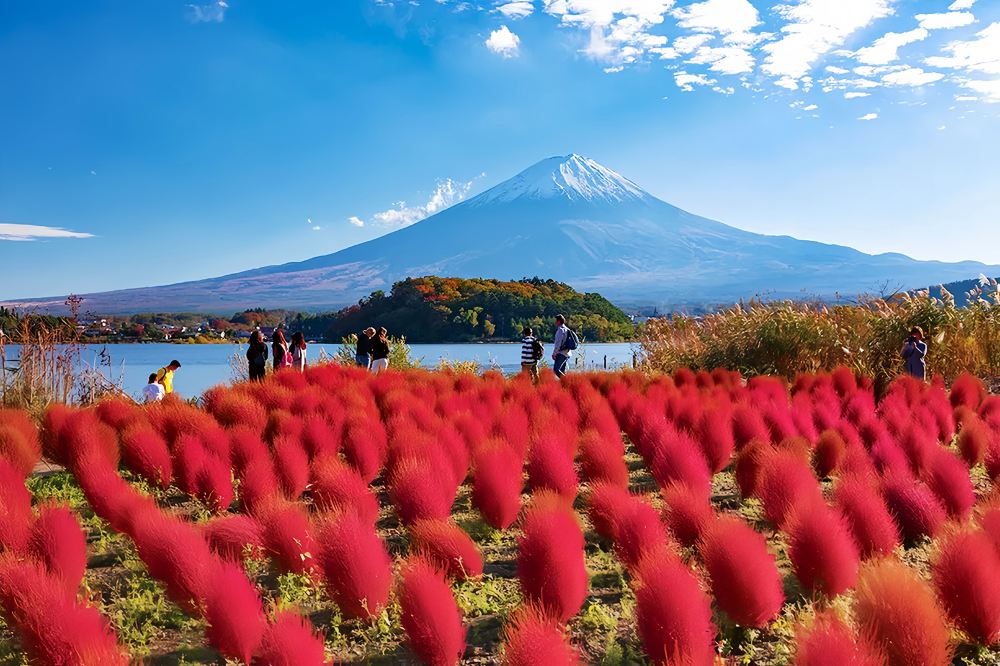 ▲ 河口湖大石公園:位於河口湖沿岸的大石公園,是欣賞富士山的經典地點之一。公園隨季節變換展現不同花卉,猶如一條絢爛的花毯延伸至富士山腳,湖光山色與繽紛花卉共同營造出令人難忘的景致。