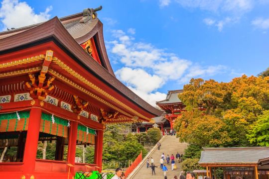 【鶴岡八幡宮】這座供奉武士守護神八幡神的優美神社至今已有超過800年歷史,與近百年的日本歷史及文化密不可分。神社現址位於鎌倉市中心,亦被公認為城市之魂。