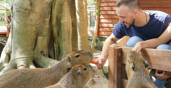 抵達可倫賓動物園參觀。園區內的土著人表演、飛鳥表演,自費餵袋鼠和抱樹熊,是昆士蘭州才有的福利哦