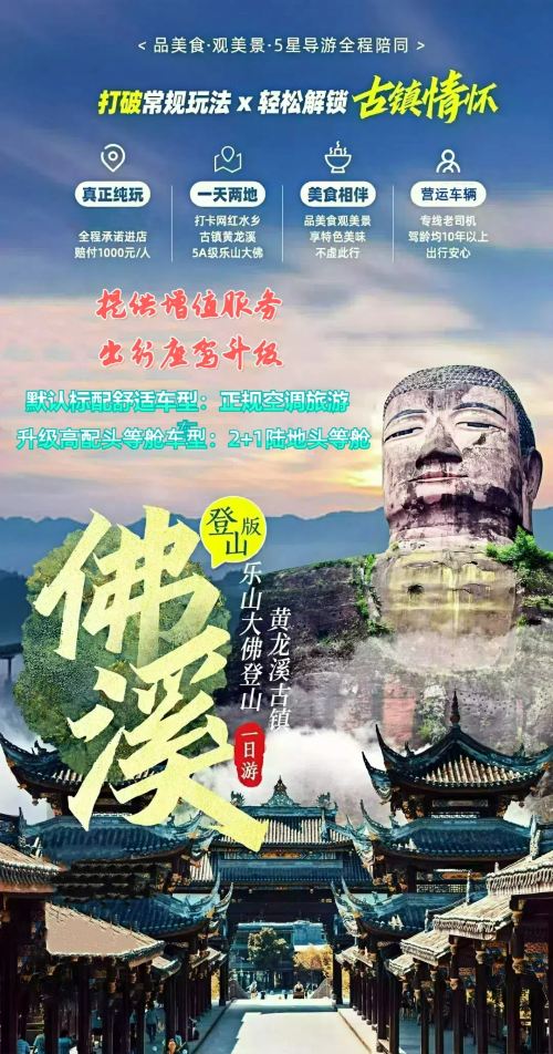 樂山大佛+黃龍溪一日遊·可選15人團◆一價全包◆全包