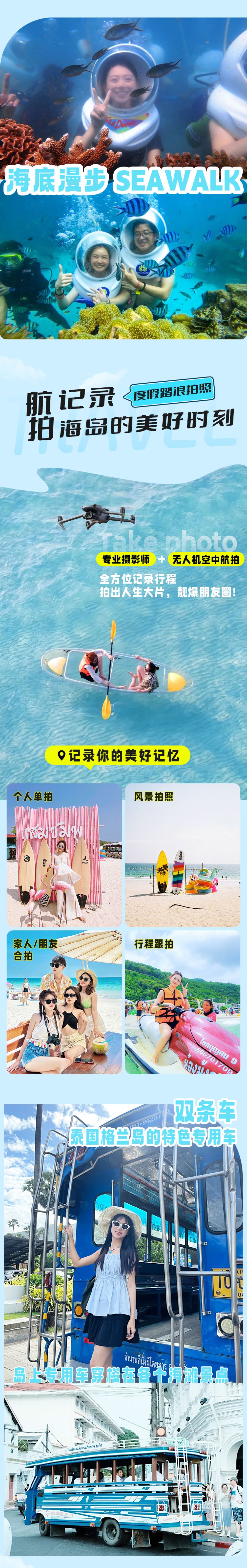 所有套餐均包含:酒店接送 + 快艇接送 + 浮潛 + 水上樂園 + 旅拍 + 航拍 + 午餐 + 透明船 + 毛巾 + 中文導遊