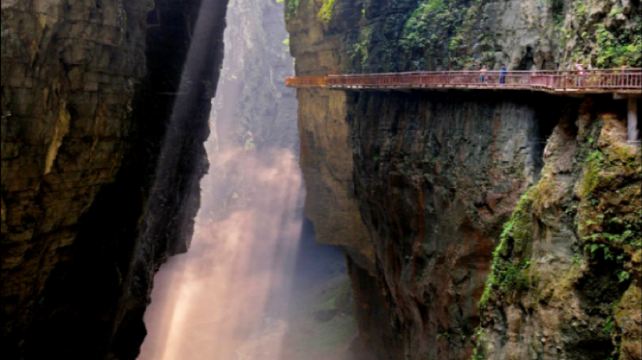 ▲ 重慶涪陵的國家5A級景區,武陵山系西北尾端的地球「傷痕」,2024年新晉5A重慶市涪陵區人民政府。核心為青天峽地縫,長1.5公里、窄僅2米,棧道嵌絕壁,暗河奔湧,34米暗河瀑布堪稱全國;天門洞索橋橫跨180米深谷,雲霧中如踏雲端。喀斯特地貌造就絕壁、奇峰、一線天,負氧離子富集,避暑探險兩相宜