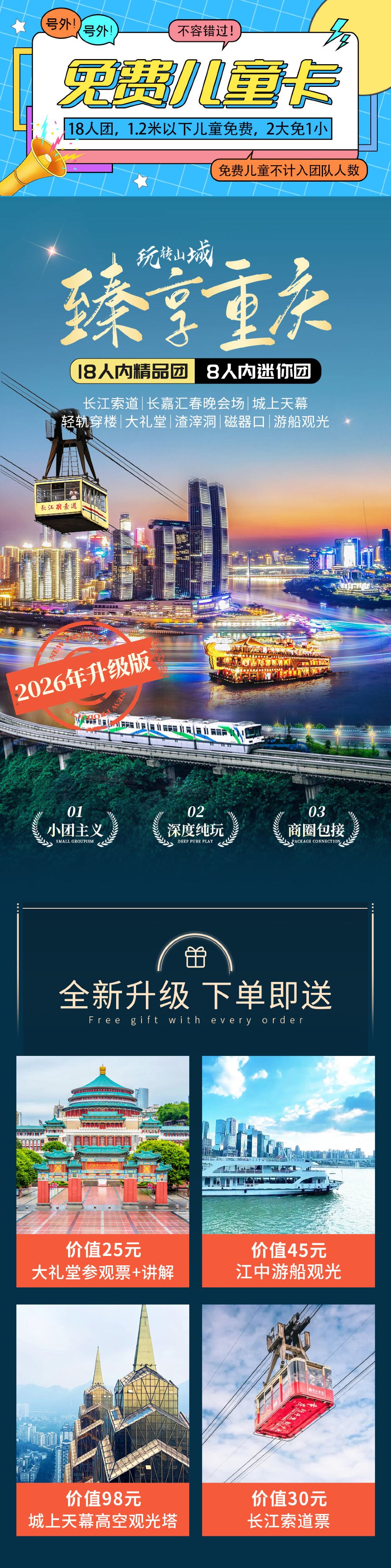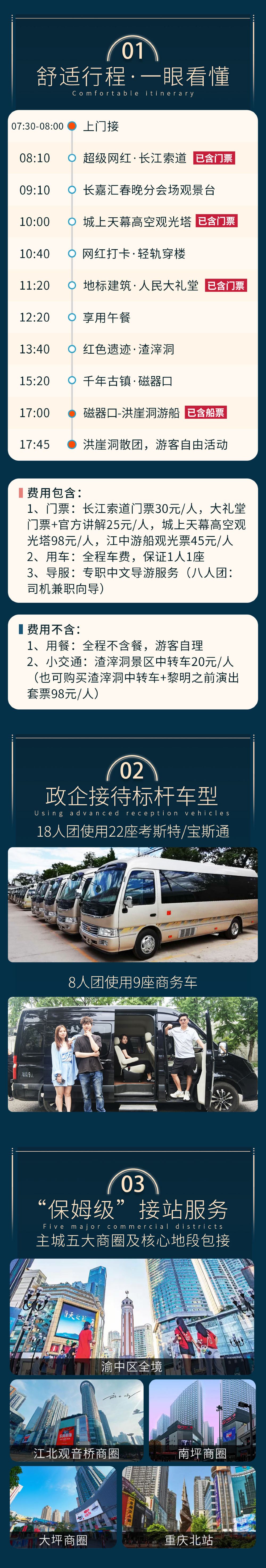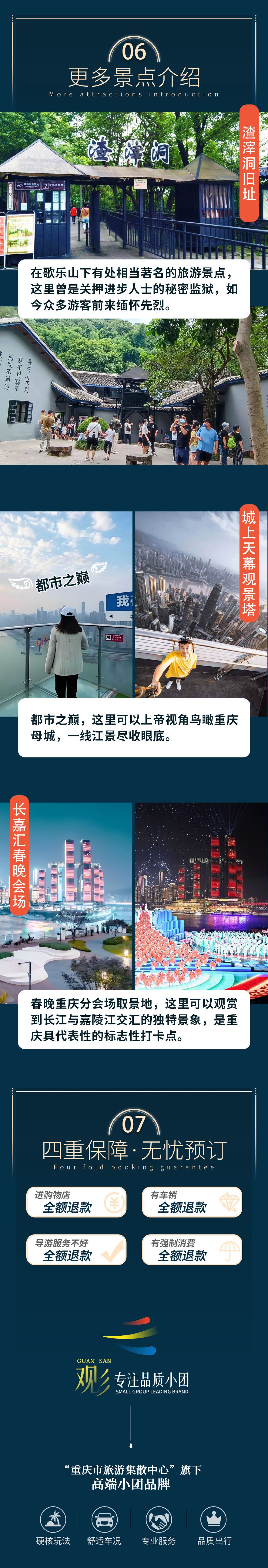 2、線路已包含長江索道門票30元,城上天幕高空觀光塔門票98元,大禮堂門票+講解25元,輪渡嘉陵船票45元