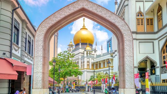 ▲ 【甘榜格南】-【百年蘇丹回教堂】甘榜格南是新加坡古老的城區之一,在探索這片歷史氛圍濃厚的街區時,您不妨以金燦壯觀的百年蘇丹回教堂(Sultan Mosque)作為地標,引導您在繁華熱鬧的大街小巷打卡。這座雄偉的回教堂由柔佛蘇丹胡先於1824年建造,是新加坡重要的宗教建築之一。