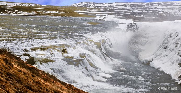 冰島第二大冰川朗格冰川(Langjökull)的融水從峽谷中墜落,形成了雄偉的「黃金瀑布」。