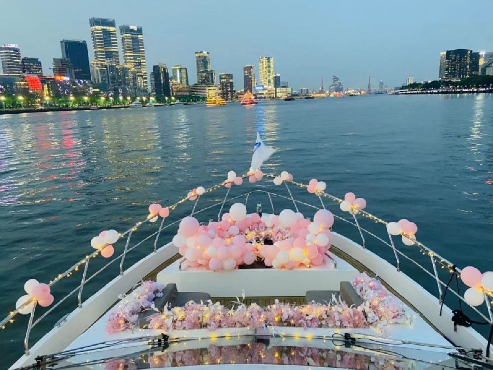 上海遊艇包船夜遊黃浦江生日求婚佈置加遊艇用餐高端豪華套餐