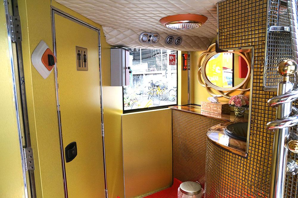 雙層巴士內部相當寬敞,第一層為備餐區及洗手間