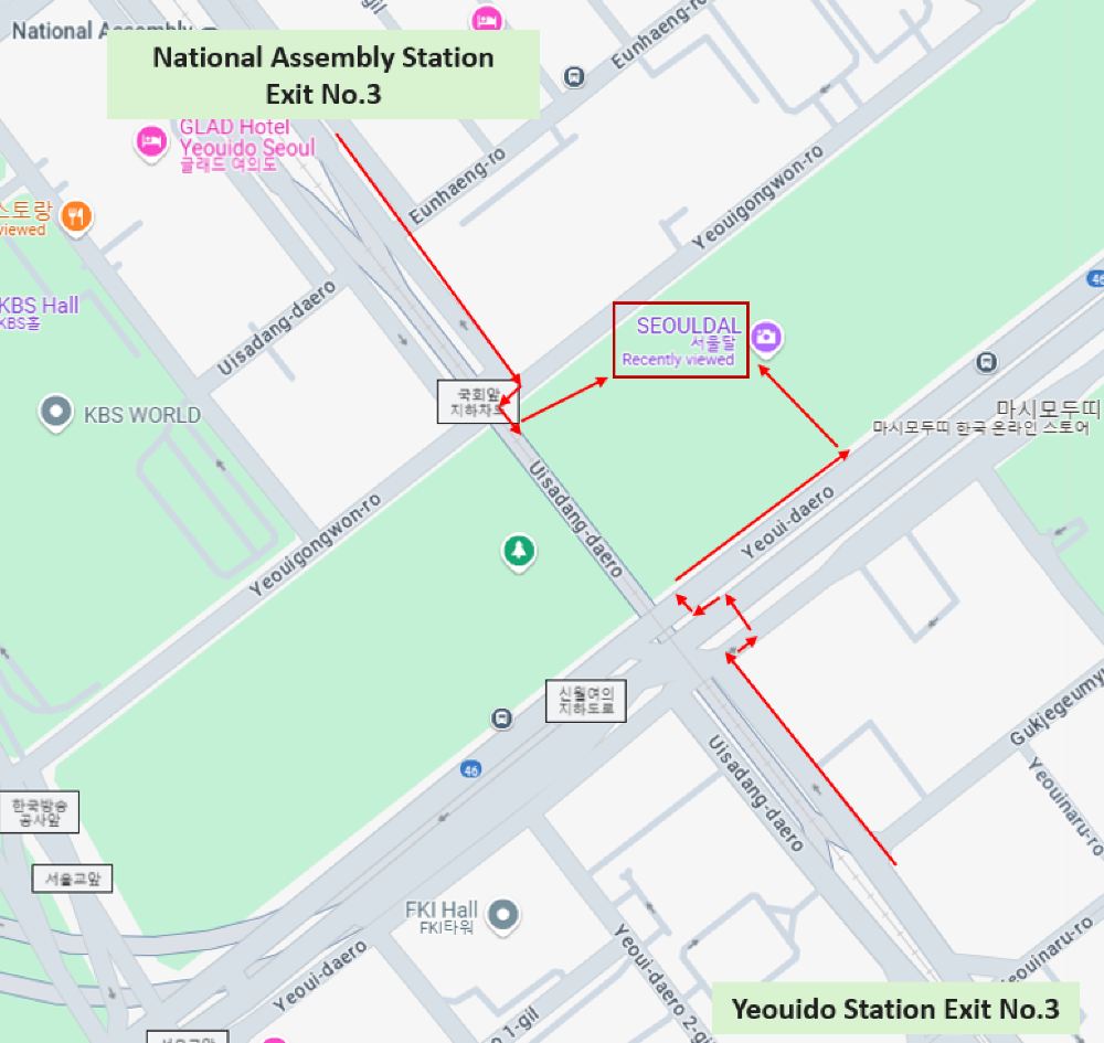 - 地鐵:5號線、9號線汝矣島站3號出口(步行13分鐘)