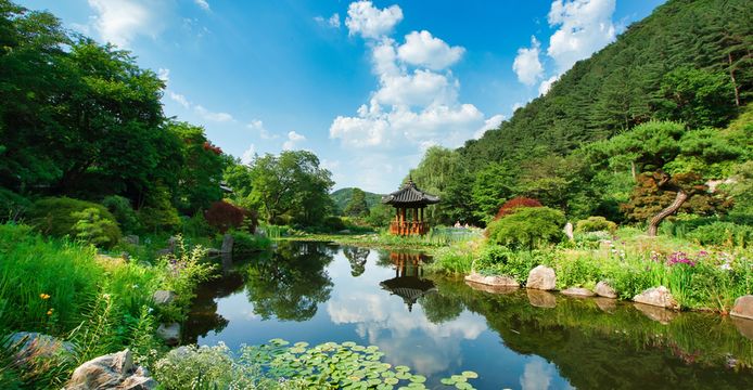 這個私人花園最初於1996年5月11日開放。自那時起,創辦人與員工一直致力於在園內展現韓國的自然美景與東方神秘色彩。
