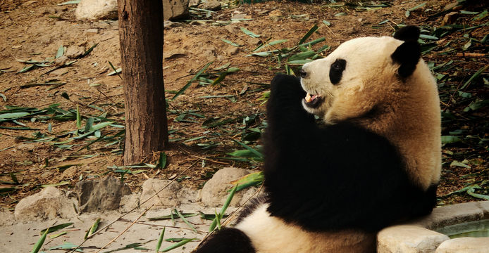 七仔——全球唯一棕色熊貓——西安熊貓一日遊——秦嶺四寶科學公園