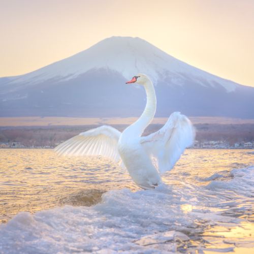 ▲ 從山中湖可以清晰地眺望到富士山的壯麗全景,尤其是在天氣晴朗的日子裡,富士山的雄偉身姿倒映在湖面上,形成一幅如詩如畫的美景,吸引了眾多遊客前來觀賞和拍照。每年秋冬季節,會有大量的候鳥到此棲息和覓食,如天鵝、大雁等。遊客可以在這裡觀賞到候鳥的靈動身姿,感受大自然的活力與活力。