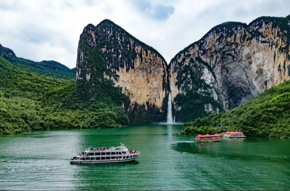 ▲ 清江畫谷:位於建始景陽鎮內,為清江幹流風景極為秀麗的河段,素有「八百里清江美如畫,大美的河段在景陽」和「八百里清江美如畫,景陽河就是畫中畫」之說。 峽谷地形險峻,兩岸絕壁高聳,奇峰、異石、瀑布眾多,岩壁色彩絢麗,形成許多天然壁畫,堪稱「水上畫廊」。主要景觀有岩壁睡佛、五花暮靄、九疊泉瀑布、清江睡童、龍灣瀑布、蝴蝶岩等。