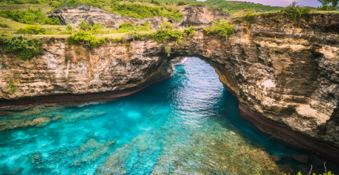 天神浴池(佩妮達島):一個天然形成的無邊際泳池,由岩石雕刻而成。最佳參觀時間為退潮時,此時池水清澈,適合拍照。岩石濕滑且水流湍急,請留意潮汐並避免大浪時前往。