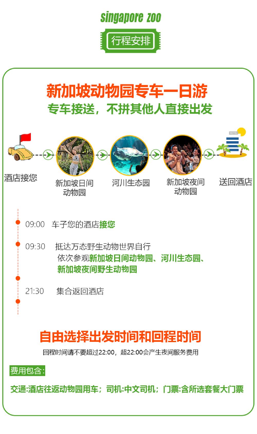 新加坡夜間動物園+河川生態園+日間動物園+專車一日遊+普通話司機+私家車團不拼外人
