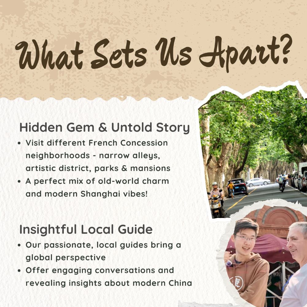 這趟旅程將帶您穿梭於多元化的社區——前一刻,您可能漫步於當地社區的狹窄小巷,下一刻,便會置身於優雅的別墅和公園之中。您將探索田子坊等標誌性地標,以及鮮為人知的隱秘瑰寶。我們知識淵博的導遊將分享引人入勝的歷史和當地故事,讓您更深入地了解中國的過去與現在。您還可以在咖啡廳享用一杯免費咖啡或飲品,放鬆身心。