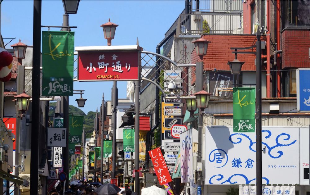從鎌倉車站延伸至鶴岡八幡宮的小町通是鎌倉相當著名且熱鬧的老街。街道兩旁有著許多商店,販賣著各式各樣的小東西:鎌倉的土特產、日本的手工藝品及當地美食等種類多樣,深受當地人與觀光客的喜愛。這