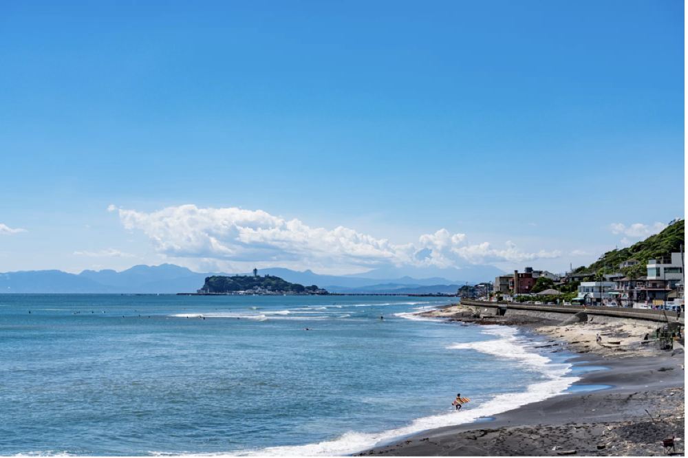 日本關東著名的湘南海岸,是衝浪者及喜歡海邊活動的人的天堂,而若是天氣好的時候,還可直接看到富士山。