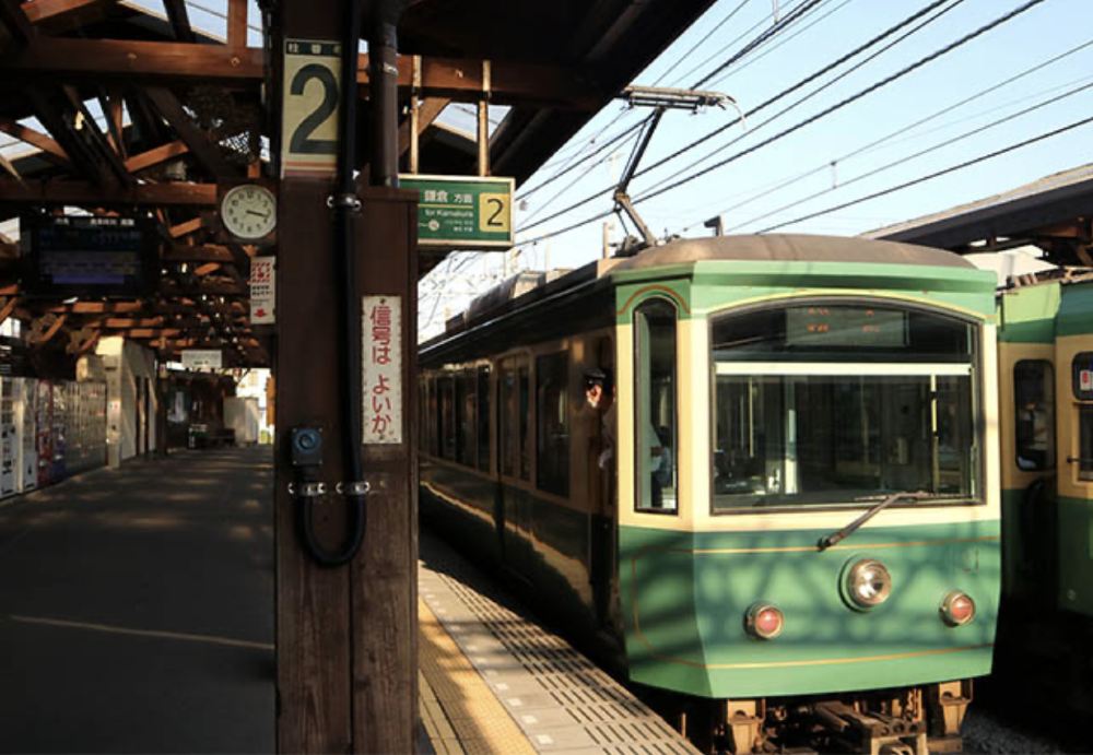 江之電是連接藤澤至鎌倉的路面電車。行經路線含括了鎌倉大部分的著名景點,並且還可欣賞到美麗的湘南海岸風光。電車疾駛而過的畫面,常出現在日本各大電影動畫作品中。