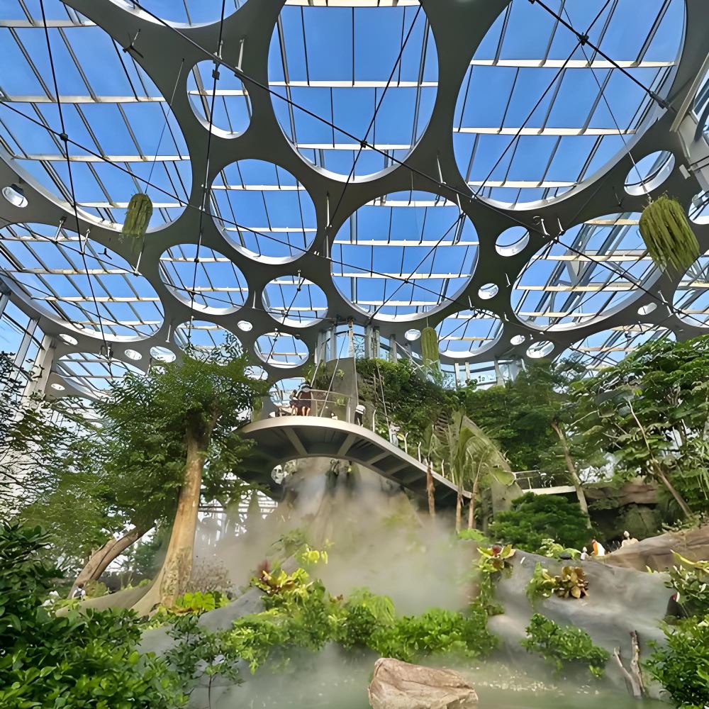 上午,踏入世博文化公園的溫室花園,佔地約2.2萬平方米的空間裡,1300多種植物構建出夢幻水下森林,罕見植物令人稱奇。