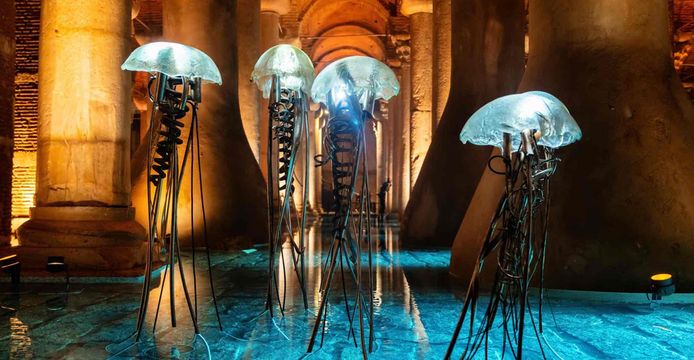 蘇丹艾哈邁德清真寺的藍釉穹頂與聖索菲亞的基督壁畫碰撞宗教藝術,地下水宮的美杜莎石柱低語拜占庭智慧。加拉達石塔