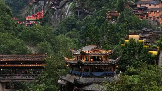 雙重體驗深度遊玩-懸壁古鎮夜景/瀑布溯溪(含門票)+木工坊非遺手工藝