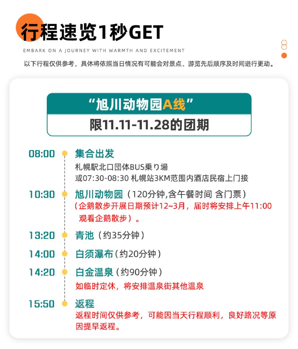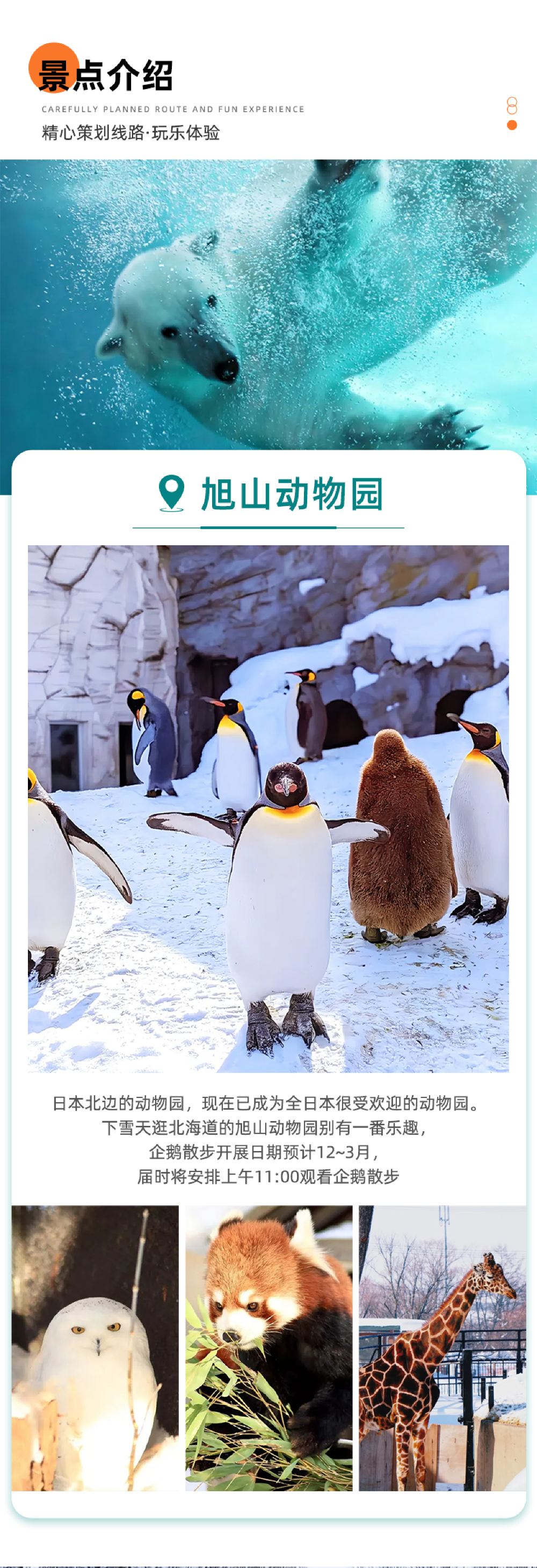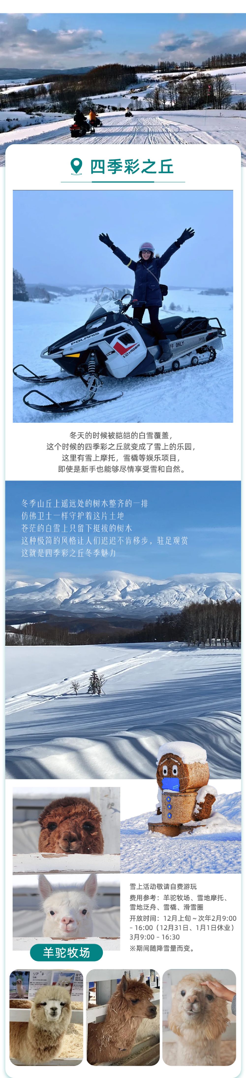 北海道很精彩,動物園裡的小動物很好玩,司機很和善,接送都很準時,每個景點都會提前告知集合時間,很不錯,這個行程安排的很好,雪還不是很大,但是雪景還是很不錯的