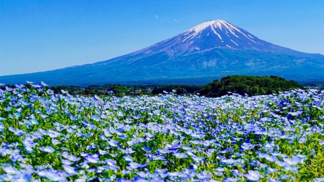 ▲ 河口湖·大石公園 位於河口湖北岸,一年四季都有不同花景: 春芝櫻、夏薰衣草、秋楓葉、冬雪景,搭配湖與山的倒影, 構圖層次豐富,是富士山下的攝影點之一。