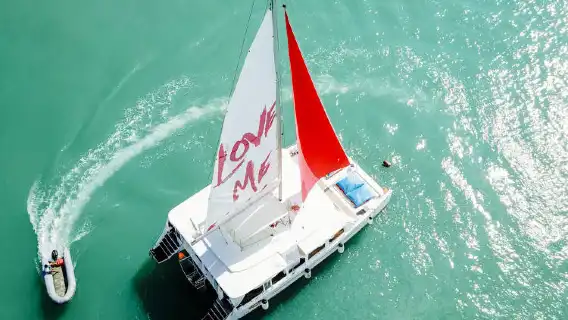 布吉經典出海路線:皇帝島+珊瑚島,55英尺雙體雙層帆船服務。