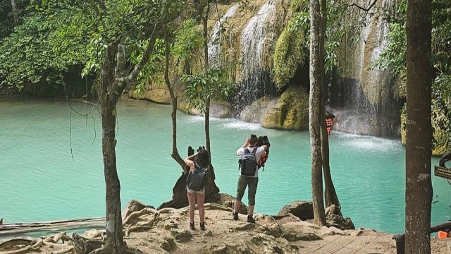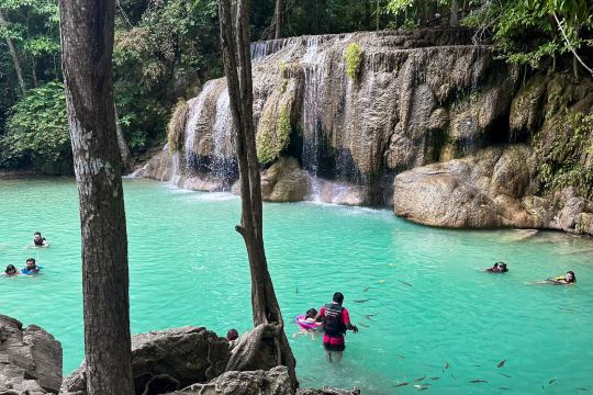 ▲ 前往七層瀑布(Erawan Waterfall),欣賞翡翠般的碧綠水池。暢遊各層瀑布,享受游泳的樂趣。