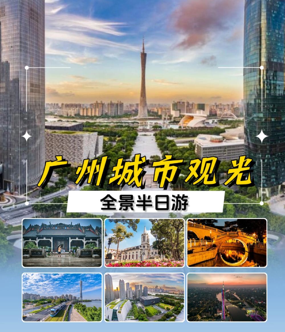 半日遊廣州代表景點,不起早舒適遊;坐纜車輕鬆暢遊南粵名山之一白雲山;花城廣場外觀打卡廣州標誌「廣州塔」