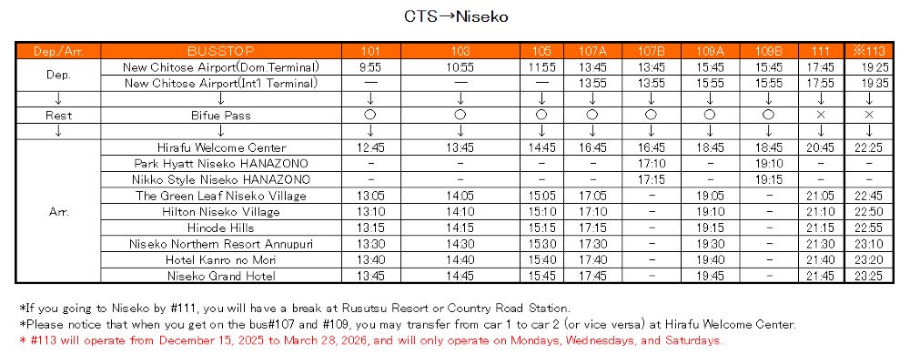 *如果您乘坐111路前往二世古,您將在留壽都度假村或Country Road站休息。