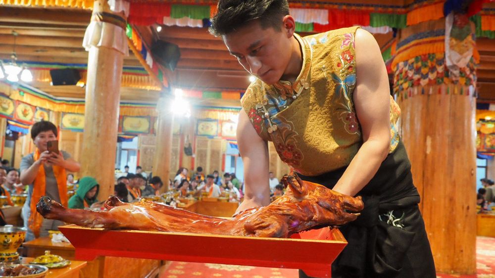 宴會上,美食是一大亮點。以自助小火鍋為主,提供氂牛肉、藏香豬等高原特色食材