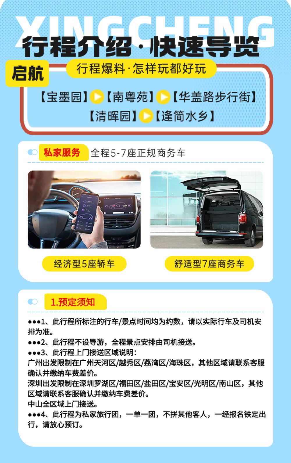 私家小團上門接送|廣州番禺寶墨園+南粵苑+順德清暉園+品美食