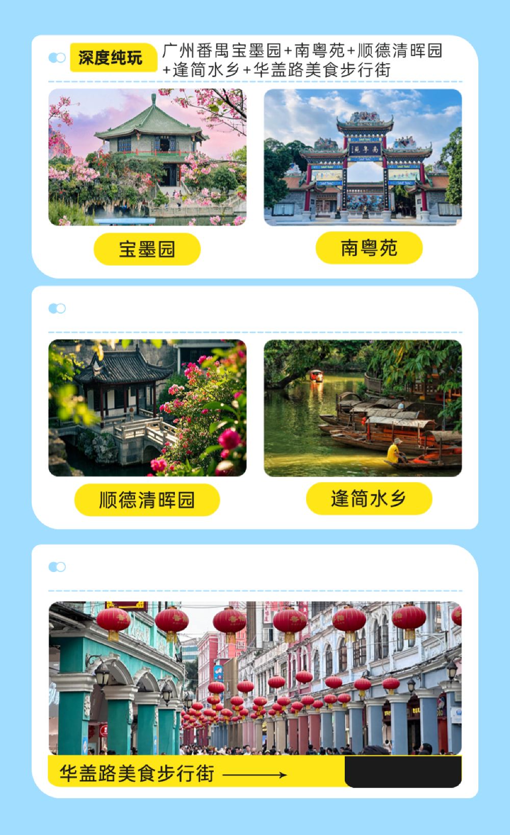 精華旅程:全程甄選有代表性、熱度高的精華景點,一天遊番禺寶墨園+南粵苑+順德清暉園+逢簡水鄉+華蓋路