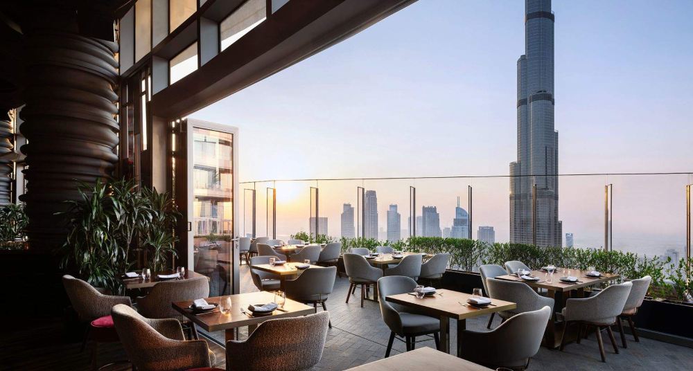 一邊享用輕鬆的晚餐,一邊欣賞哈里發塔的壯麗全景