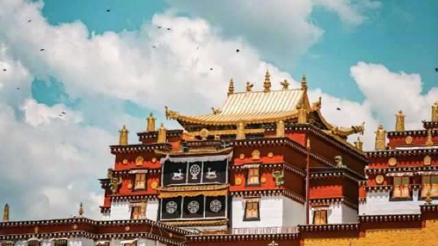 在松贊林寺,一定要順時針方向繞轉經筒和佛塔轉一圈。