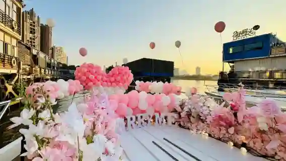 【廣州遊艇生日求婚精美佈置】廣州72/82英尺豪華遊艇包船+生日求婚佈置~升級豪華精美佈置套餐~寬敞豪華遊艇