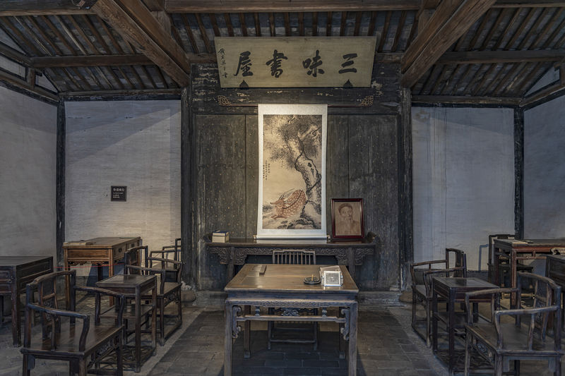 還記得語文課本裏那幅三味書屋的插畫嗎?古樸的書桌與座椅,完整保留了舊時風貌