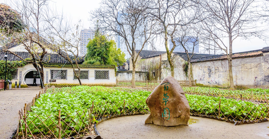 探訪百草園,尋找文中提到的皂莢樹、桑椹、何首烏藤等植物,回憶魯迅童趣時光。