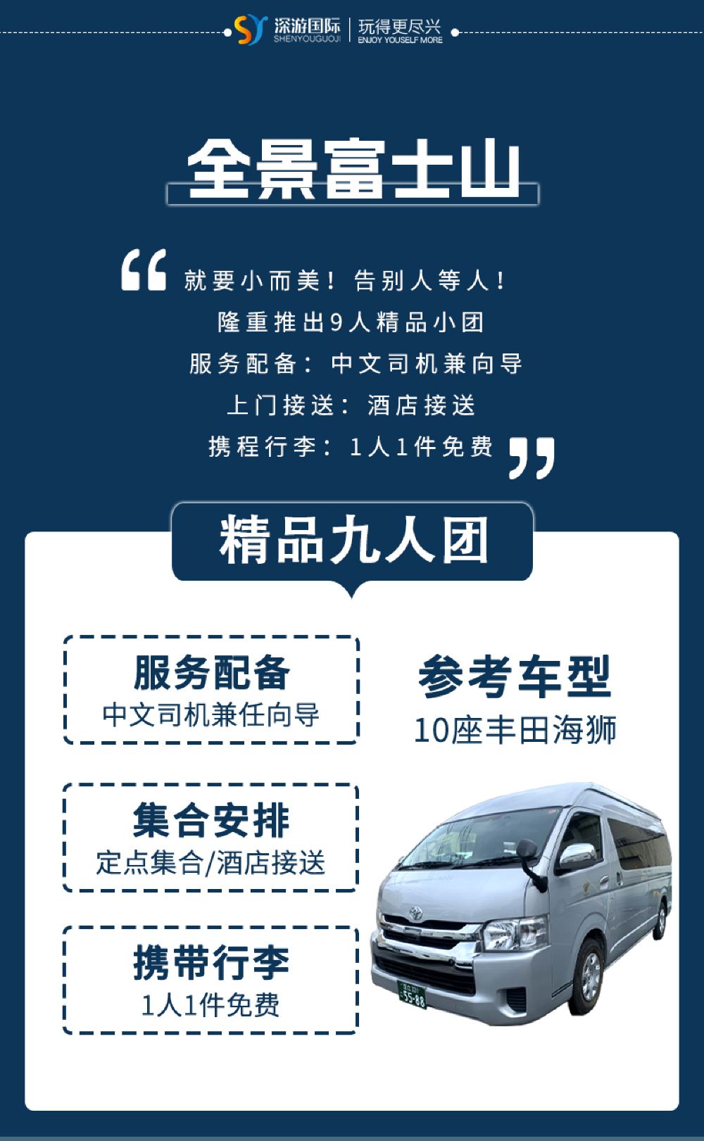 車車很新,體驗很舒適,景點能串起來玩,比自己到處跑方便多了,能上門接送(特定個範圍內),希望下次有活動價格更親民一點,然後能夠自由制定路線,這次雖然沒有看到富士山🗻,但是還是很快樂滴,下次再來!能!