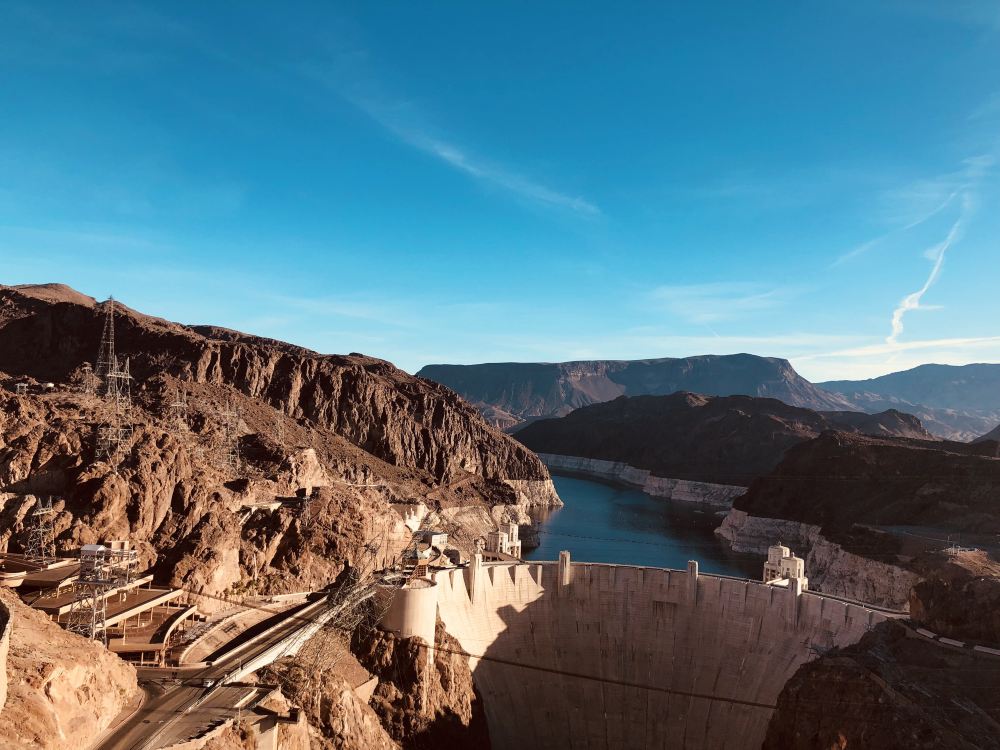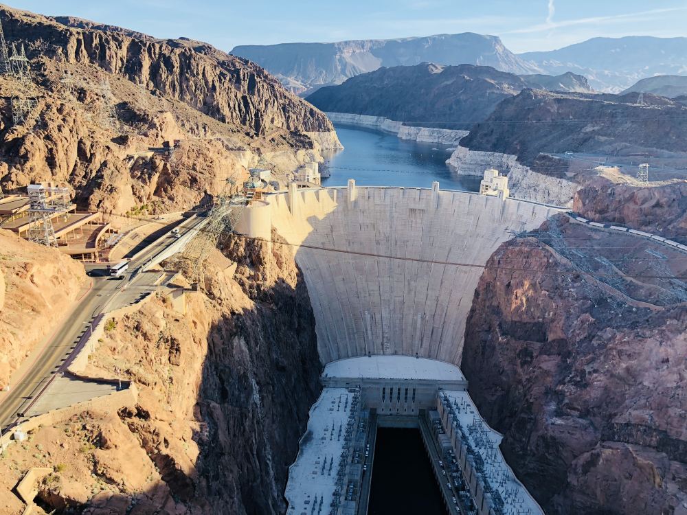 ▲ 橫跨亞利桑那州與內華達州交界的胡佛水壩,是美國具代表性的工程奇蹟之一,也是當時世界上第一高、規模第一大的混凝土重力壩。它於1931年至1936年間建成,不僅在大蕭條時期為無數家庭提供了就業機會,也徹底改變了美國西南部的水利與電力格局。站在觀景台上,您可以俯瞰科羅拉多河的湍流與米德湖的浩瀚湖面,感受水壩巍然屹立於峽谷之間的震撼景象。這裡的藍天、碧水與紅色岩壁交相輝映,構成壯麗的西部畫卷。胡佛水壩至今仍為內華達、亞利桑那和加利福尼亞等地輸送電力與水源,是人類智慧與自然力量和諧共生的象徵。