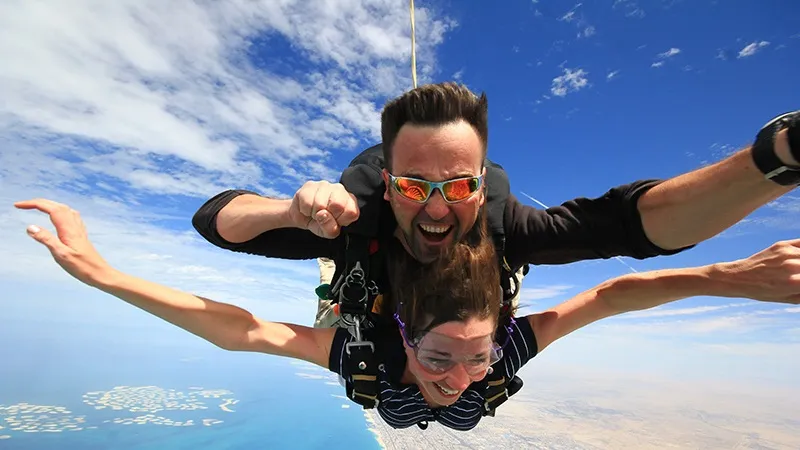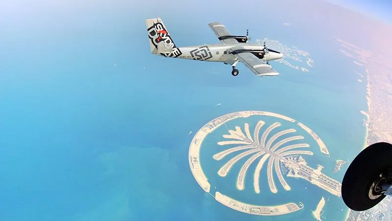 ▴在杜拜,體驗世界上最令人興奮的遊樂設施之一—跳傘。杜拜的棕櫚島跳傘區是世界上最美麗的跳傘地點之一。從這裡跳下,可以將杜拜的景點盡收眼底:棕櫚島、阿拉伯塔和世界第一高樓哈利法塔。